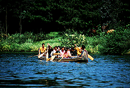 to paddle around the Rivers of America, assisted by "explorer-guides"
