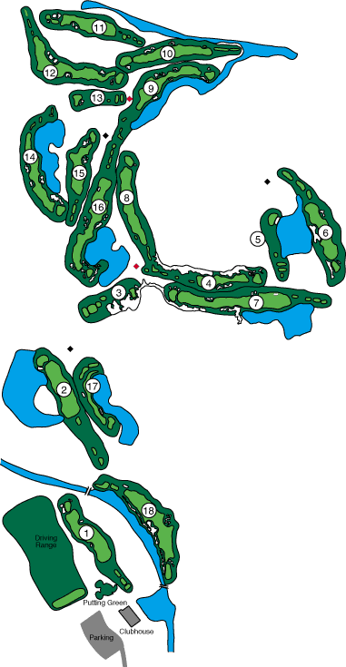 the pin placements of this challenging course. Shot and club selection